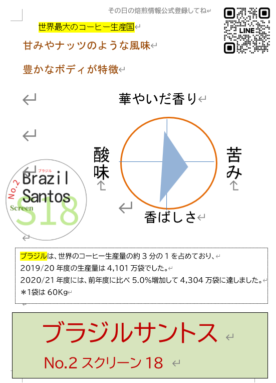 (旬)のブラジルコーヒーをご賞味ください♪