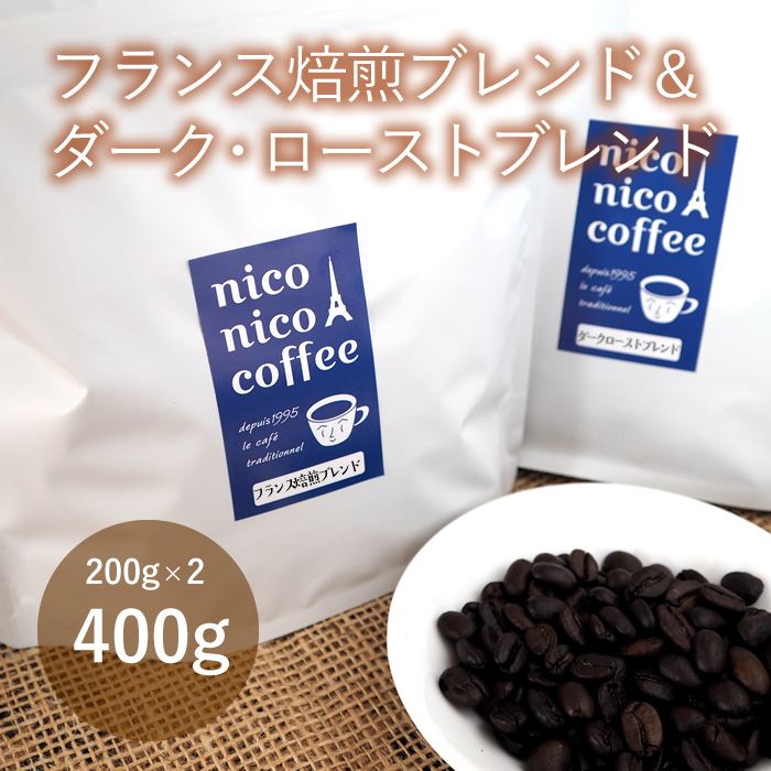 【深煎りブレンド飲み比べ】フランス焙煎ブレンド X ダーク・ローストブレンド _200g+200g_豆または粉(送料込み)